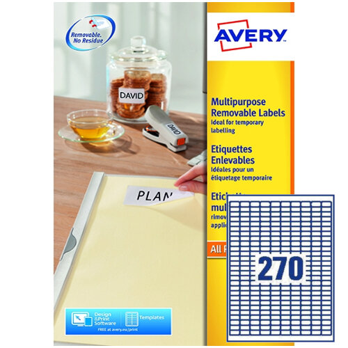 Avery White Mini Labels 38x21mm AV98886 [Pack of 16250] Avery White Mini Labels 38x21mm Ideal for a range of purposes from labelling to addressing Permanent adhesive for long lasting use High volume of labels for large jobs Inkjet compatible for producing clear, sharp text 250 sheets of 65 labels (16250 total) Dimensions: 38x21mm