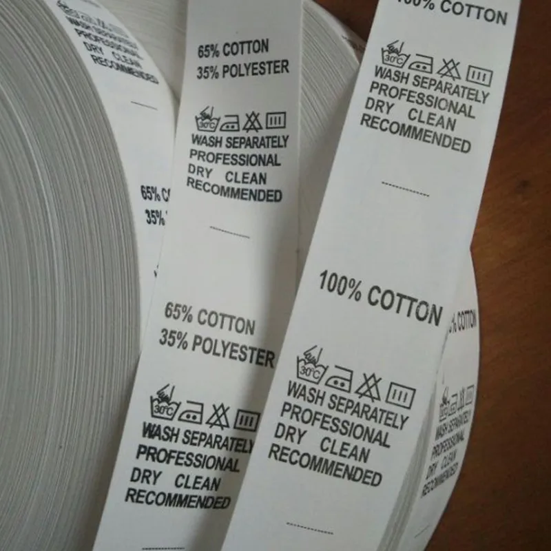 500PCS Stock sale White care label nylon coated tape print washing tags 100%Cotton/65%Cotton-in ...