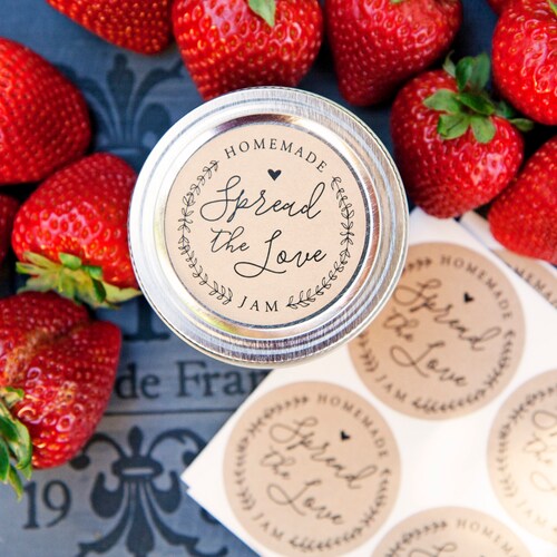 Amazon.com : Spread The Love Stickers,1.5 Inch Homemade with Love Kraft ... 1.If you are looking for to spread a little love,this sticker says it. 2.These 1.5 Inch stickers can stick on envelopes,canning jar,package bags,craft paper boxes. 3.High quality stickers. Thick, really sticky,won't fall off. 4.Good choice for small business,for your product shipping. 5.The message works well for our handmade items. Rustic Jam Jar Favor Labels - POPSUGAR Smart Living The "Spread the Love" quote on this label is adorable! These rustic jam favor labels will have your guests feeling loved.. Source: The Elli Blog